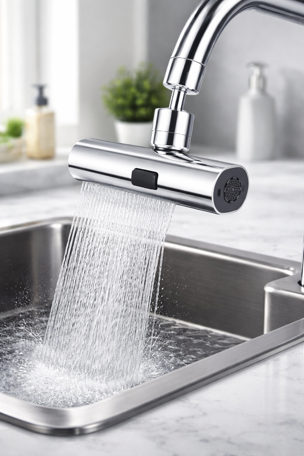 Questo permette di ottenere un getto potente e uniforme, utilizzando meno acqua rispetto a un rubinetto tradizionale.