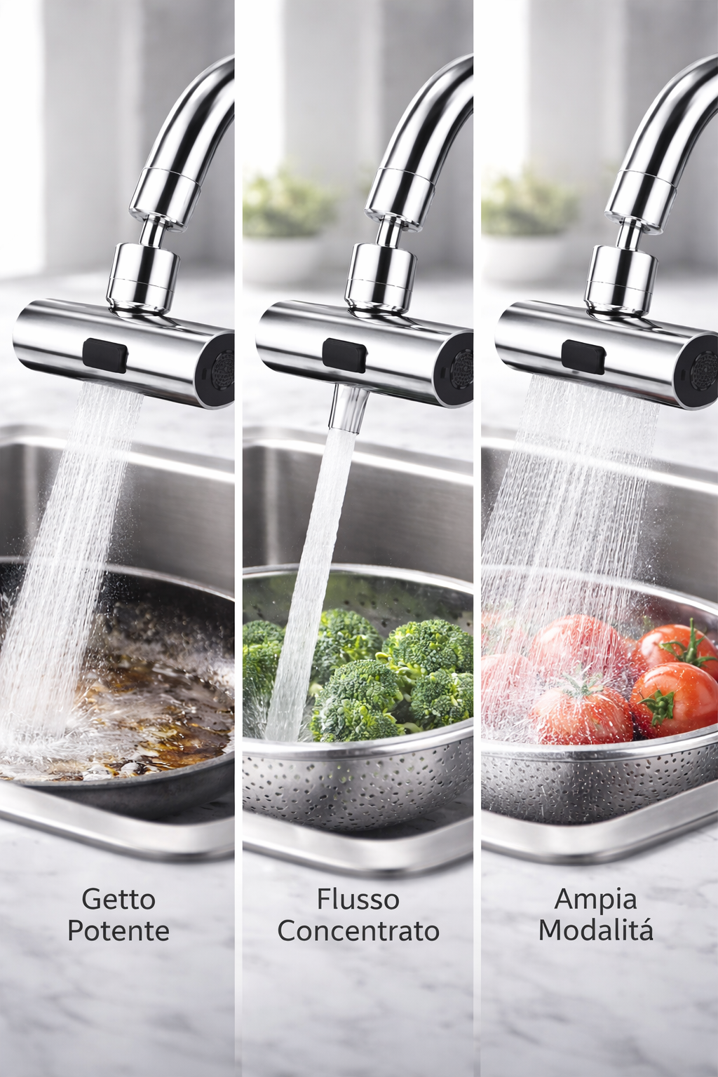 Una rotazione completa a 360°, tre modalità di getto e un flusso progettato per essere più preciso ed efficiente.